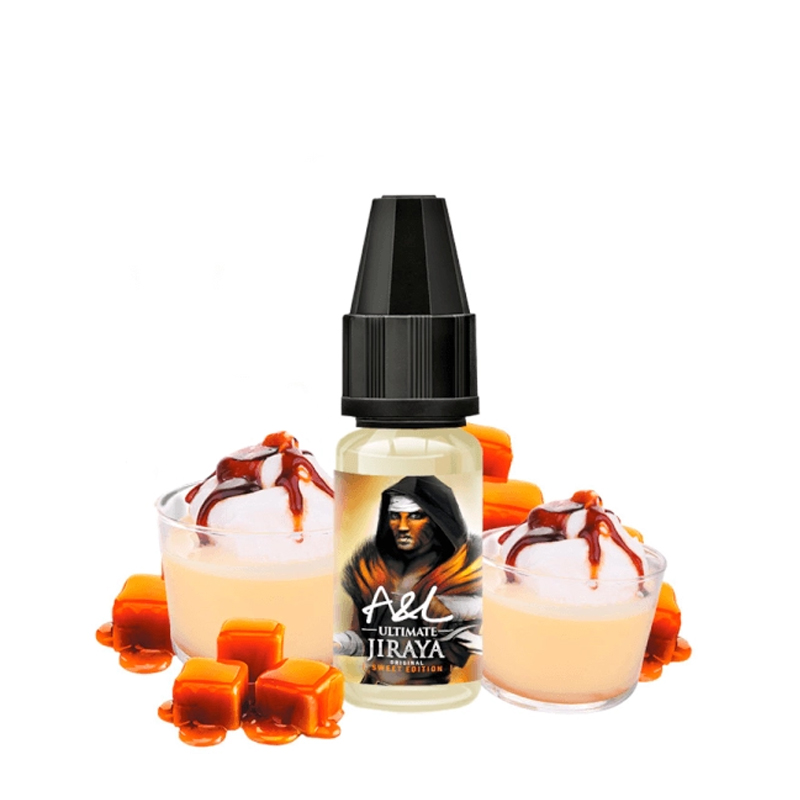 A&L Ultimate Sweet Edition Jiraya Aroma 10ml es un aroma concentrado para crear tus líquidos de vapeo. Es el típico postre francés Isla Flotante, el cual es un dulce soufflé con caramelo y vainilla. Perfecto para los amantes de los postres, este aroma es una excelente base para la preparación de e-liquid.